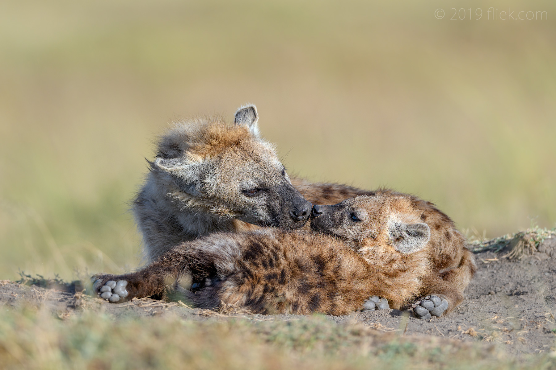 At the end of our safari week our driver took us to a hyena den. Suddenly we were witnessing quite a different view of hyenas compared to the typical images on television and other media of ferocious/ruthless killers with only one thing on their mind: to hunt for prey. Hyenas are extremely social creatures and look after their offspring with much care and devotion. Another memorable moment from a magic safari week in the Mara…