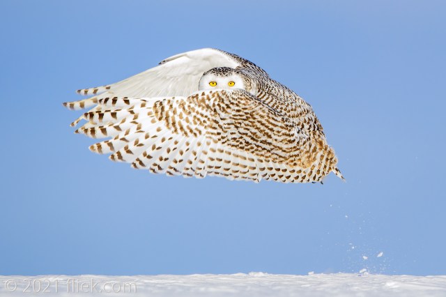 Third, the “Focus Tracking with Lock-On” menu setting controls how much the camera should ‘stick’ to the focus while other things change; for example something else jumps into the scene, or the distance between the subject and camera suddenly changes. I had always set this to #3 (Normal), but in the case of shooting Snowy Owls coming at you at about 70 km/h, setting this to ‘Off’ works miracles!